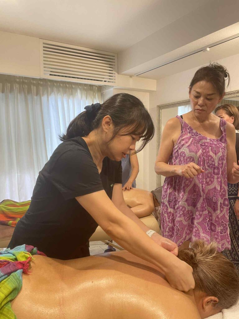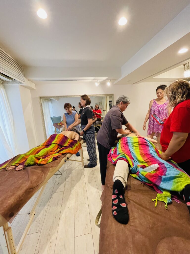 今回は、背中のヒロットを復習、ブラッシュアップ、頭側からのトリートメント技術を練習しました。